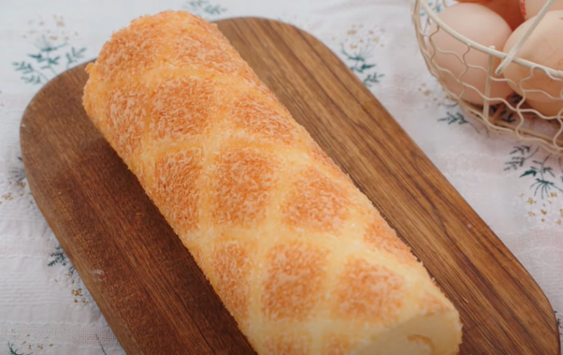 | 私房爆款香妃捲(融入性課程) | 香妃捲顏值很高,做好的蛋糕麵糊上邊擠上格子形状的沙拉酱,然後再灑上一層北埔在地文化特產擂茶粉,烤完就是金灿灿的很漂亮! |