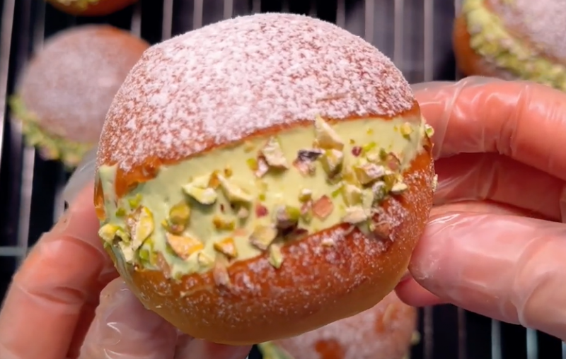 | 開心果羅馬生乳包 | 開心果口味的羅馬生乳包,這款生乳包麵包體蓬鬆柔軟中間加的是冰冰涼涼的開心果奶油口感細膩勝。 |